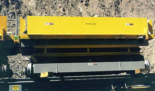 The scissor lift, pictured here, is used to attach water tanks or heavy freight and equipment to the underside of the cabins.
